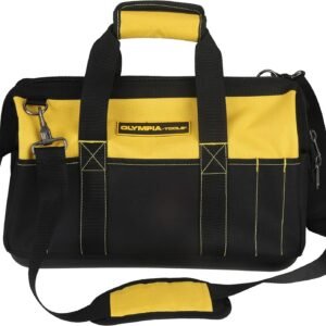 Comprar AhoraOlympia Tools 16 Inch Wide Mouth Tool Bag, Molded Waterproof Base with 21 Pockets and 7 Belt Loops, Padded Handle, Adjustable Shoulder Strap