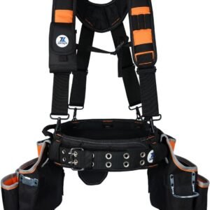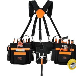 Comprar Ahora20-216 Multiple Large Pockets Tool belts for men with Suspenders, 4″ Padded toolbelt, Steel Hammer Holster, Carpenter Tool Pouch, Professional Tool Vest for men Construction, Black/Orange