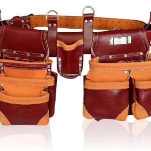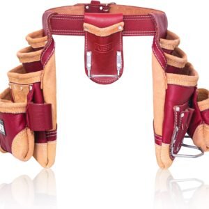 Grain Leather 18 Pockets | Tool Rig Set | Tool Pouch | Drywall Tool Belt | Carpenter Tool Bag | Leather Tool Belts for Men | Construction | Framers | Electrician (Maroon)