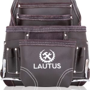 Comprar AhoraLAUTUS Top/Full Grain Leather Tool Pouch Bag | Electrician/Contractor, Electric Bag | 10 Pockets | 100% Leather Dark Brown