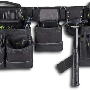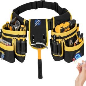 Comprar AhoraTool Belt, 11 Pocket Tools Pouch With Hammer Holder, Construction Belts for Carpenters, Electricians, Contractors, Utility Pouches, Quick Release Buckle, 33″-52” Adjustable Strap, Black