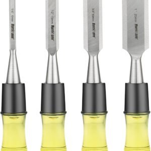 Comprar AhoraHURRICANE 4 Piece Wood Chisel Set for Woodworking, CR-V Steel Beveled Edge Blade, Durable PVC High Impact Handle Wood Chisel