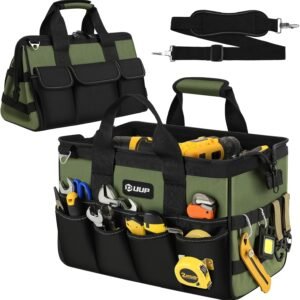 Comprar AhoraHeavy Duty Tool Bag 15-Inch, 16-Pocket Portable Tool Box Organizer Storage, Tactical Carry Tote Toolbox with Large Zipper, Adjustable Shoulder Strap, Father Day Dad Men Mechanic HVAC Engineer Gift