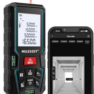 Comprar AhoraMiLESEEY Medidor Láser 50M con Aplicación de Teléfono, Telémetro Láser con 2 Niveles de Burbuja, Precisión de ± 2 mm, Pantalla LCD Retroiluminada y Modo Pitagórico, Medida de Distancia, Área y Volumen